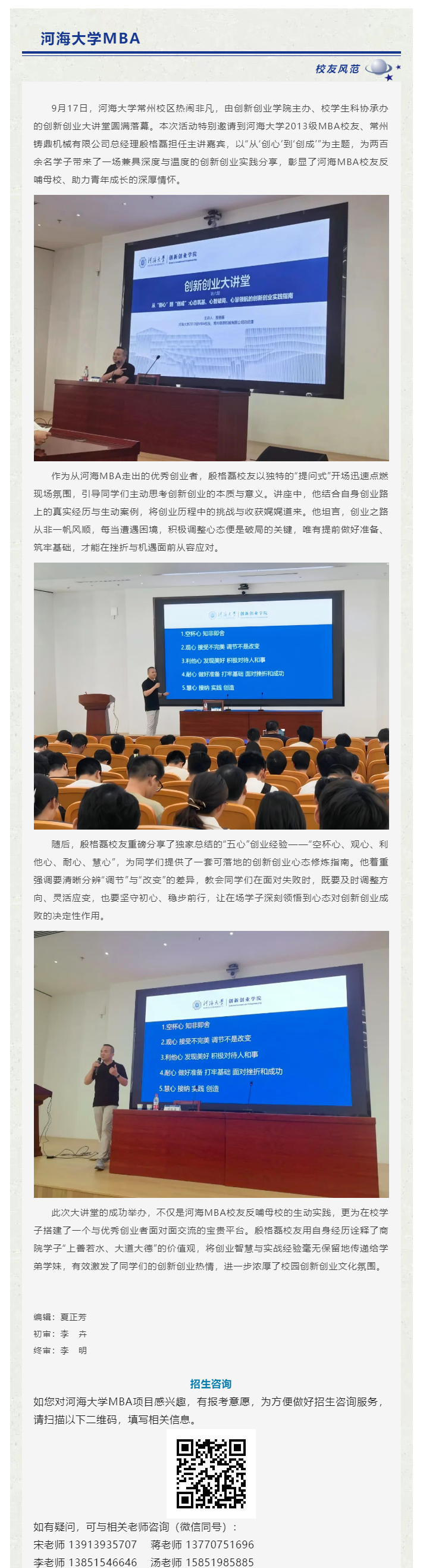 校友风范 | 河海MBA校友殷格磊返校开讲,赋能学子逐梦之路