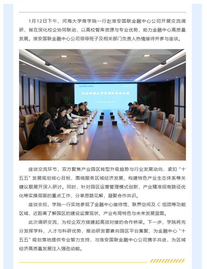 河海大学商学院赴淮安国联金融中心公司交流调研